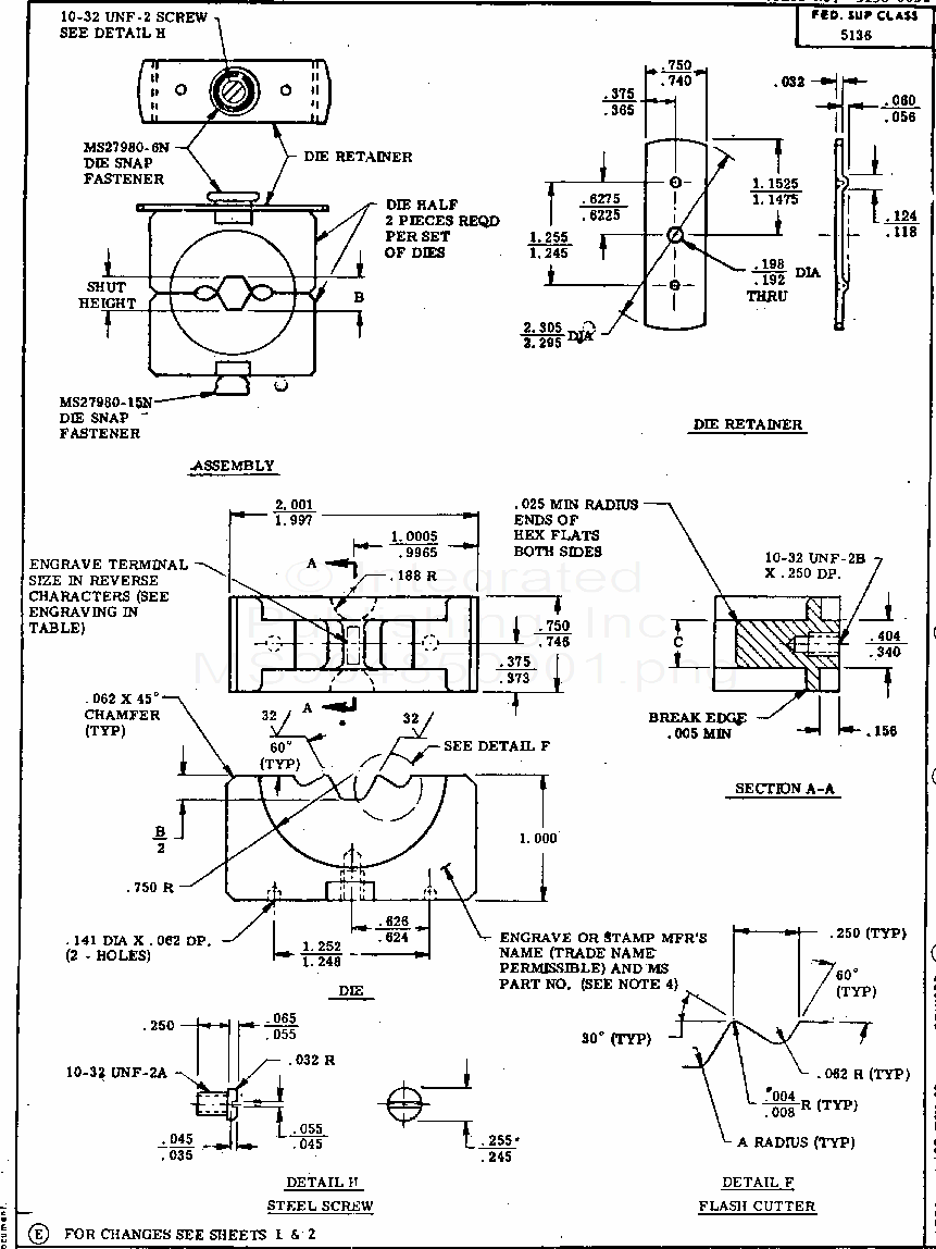 MS90485 Dies, Crimping Tool, For Use With Ms20659 Uninsulated Wire Terminals (For Wire Sizes 8 Through 4/ 0) (S/S By Sae-As5259/1)
